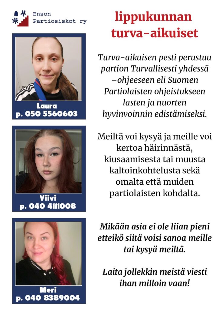Apulaislippukunnanjohtaja: Kiia Hokkanen, sposti. (etunimi.sukunimi@partio.fi) tai puh. 0404829330